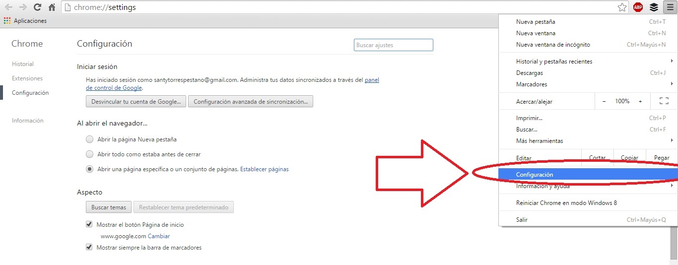 Una vez descargada, habrá que acceder a los ajustes de Chrome haciendo clic en las tres rayas que aparecen en la esquina superior derecha de la pantalla. Acto seguido, pulsar sobre ‘Configuración’.